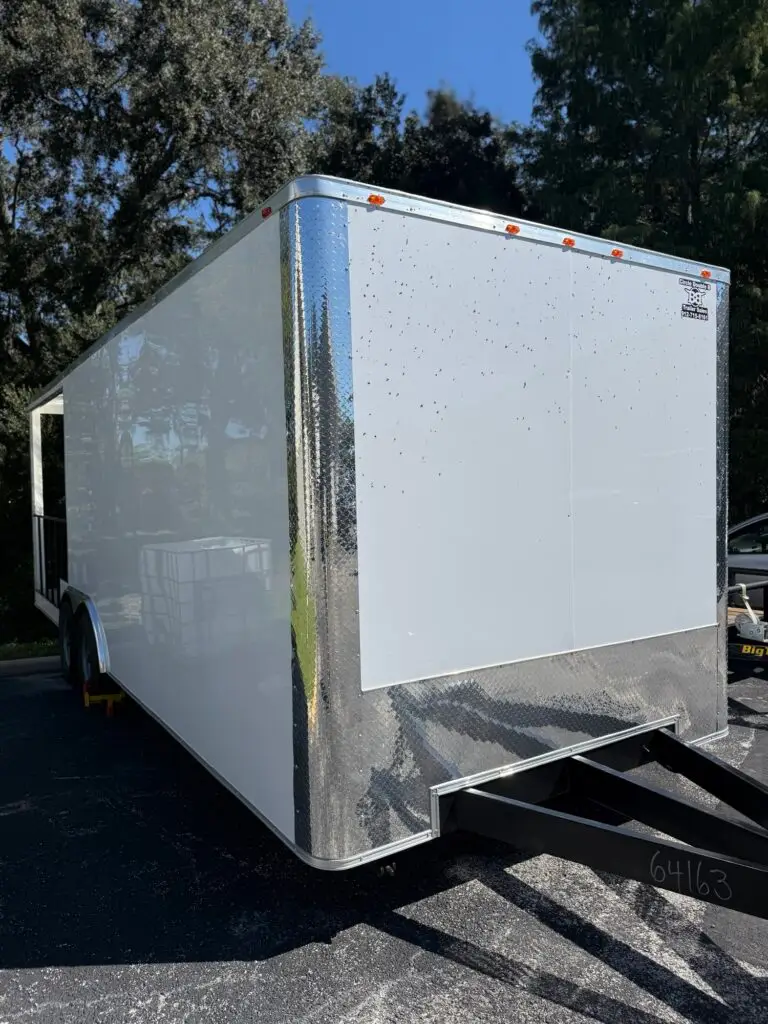 We have a 24′ Porch Trailer in Stock Ready to be turned into your dream custom kitchen. Typically used for BBQ, or Smoker Setups. This Trailer is brand new on our lot made in August of 2025, waiting to be converted into your new restaurant on wheels. We can fully customize and have this trailer ready in less than 2 weeks. Call us to customize your trailer today!